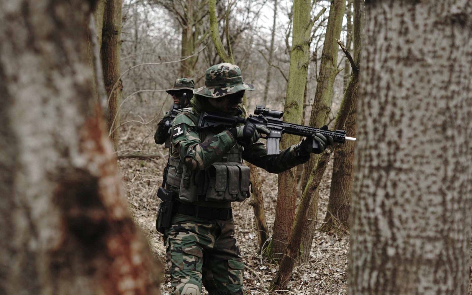 Civilians participating in a battle simulation during a combat medic training workshop near Taipei in May.